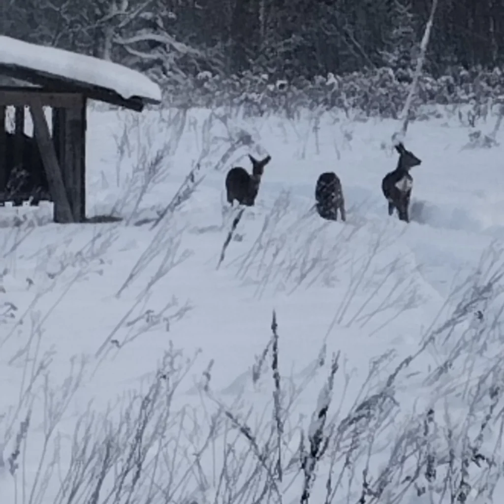 Сейчас, когда ударили морозы и насыпало много снега, такие площадки — настоящее спасение для косуль и оленей.